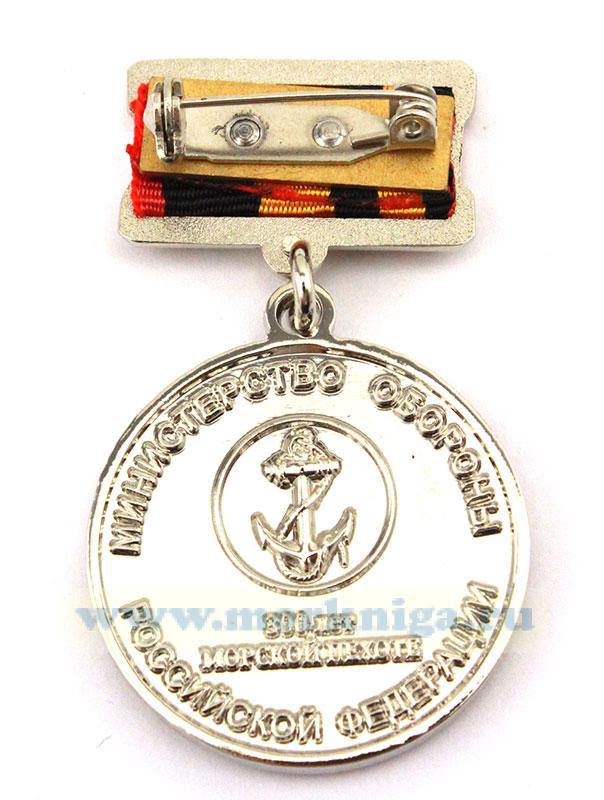 Нижний полукруг украшен лавровым венком. На центральную часть оборотной стороны помещена эмблема подразделения, ниже которой нанесена надпись «300 лет морской пехоте». По кругу выбито «Министерство Обороны Российской Федерации». Знак крепится к прямоугольной колодке, драпированной муаровой лентой.