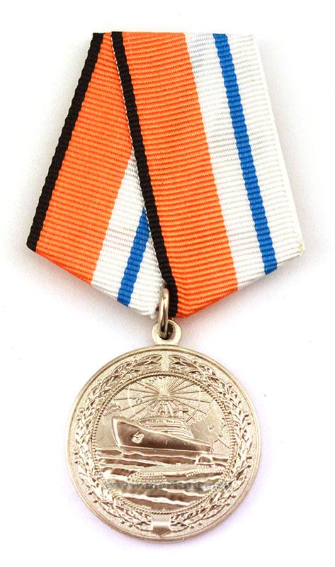 - герб ВМФ и оранжевая полоса с черным окаймлением показывают, что медаль относится к системе знаков отличия ВС РФ;