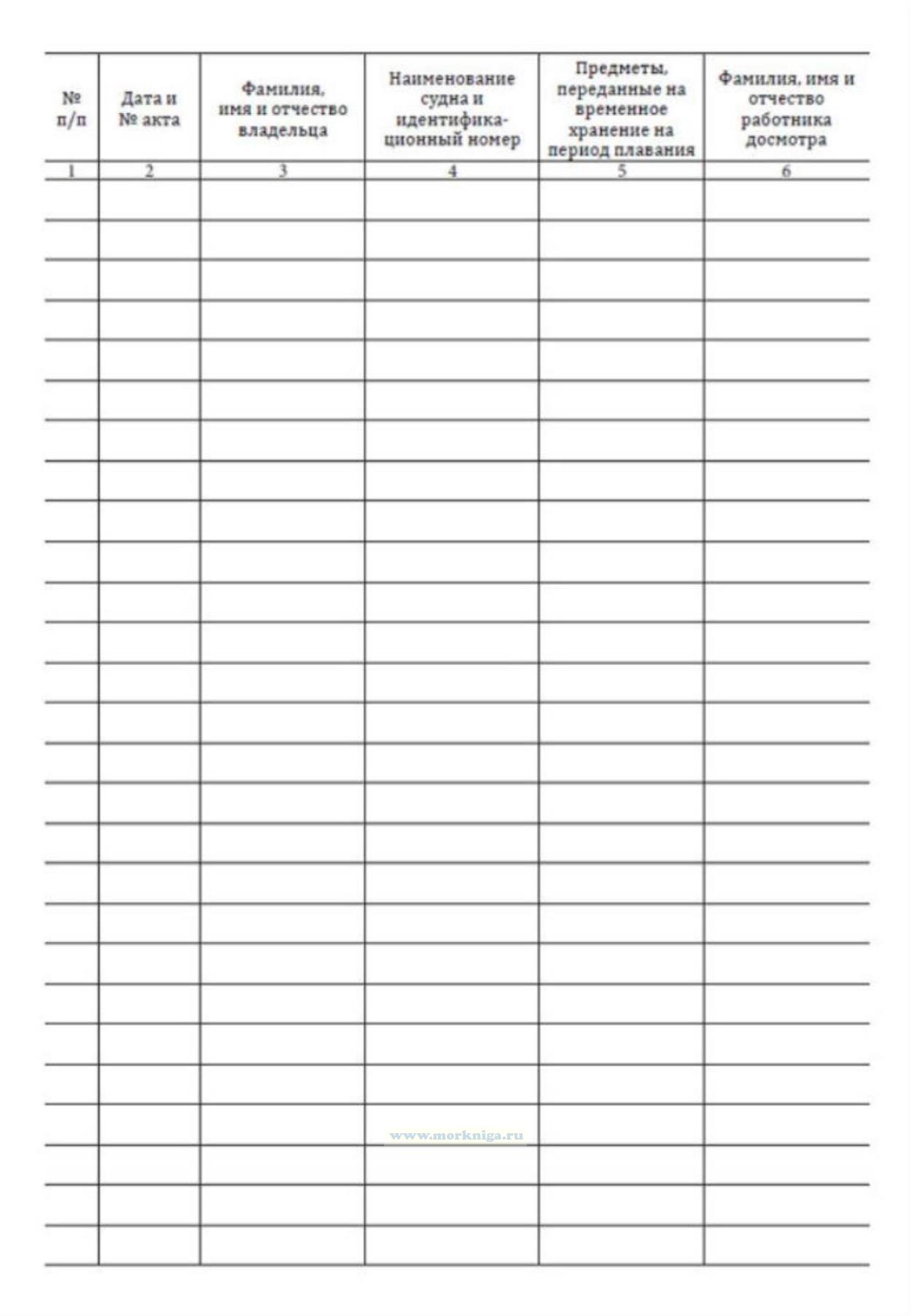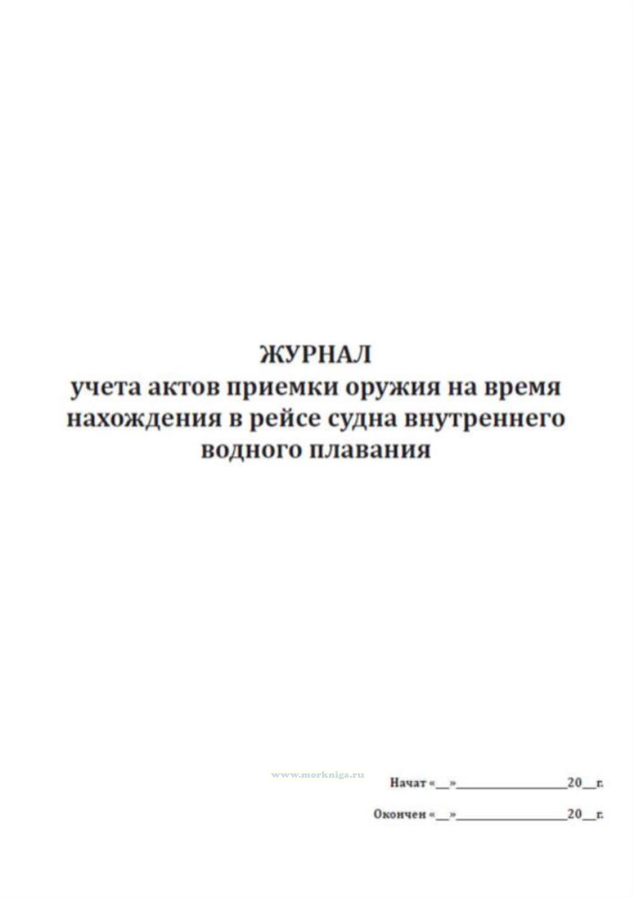 Учет актов приемки оружия на время нахождения в рейсе судна внутреннего водного плавания ведется в специальном журнале.
