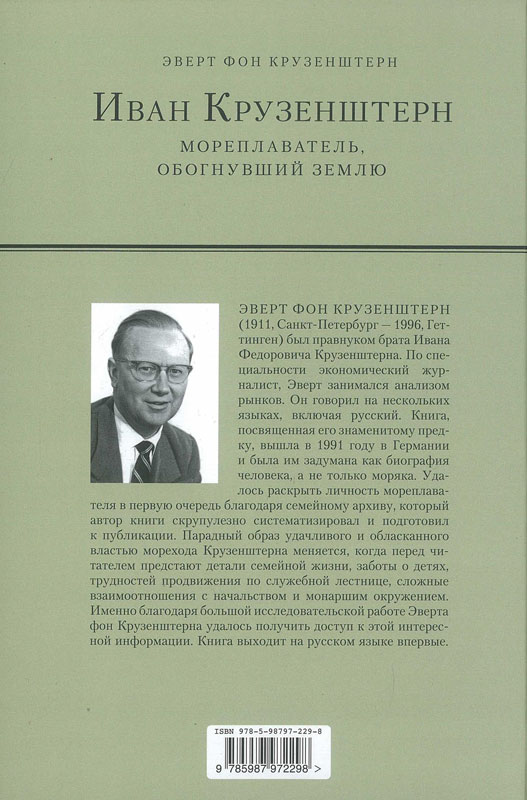 В представленной книге потомка Крузенштерна Эверта фон Крузенштерна, немалую часть которой занимает рассказ о первой русской кругосветной экспедиции, также собраны редкие документы и свидетельства десятков современников о его жизни и работе.