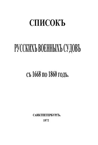 Настоящая книга представляет первый возможно-полный «Список русских военных судов», начинающийся со времени спуска корабля или барка Орел, построенного при Царе Алексее Михайловиче и оканчивающийся 1860-м годом, с которого, в приложениях к ежегодным отчетам по морскому ведомству печатаются «Судовые списки» с подробными сведениями о судах нашего флота.