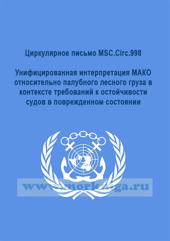 Циркулярное письмо MSC/Circ.998 Унифицированная интерпретация МАКО относительно палубного лесного груза в контексте требований к остойчиво