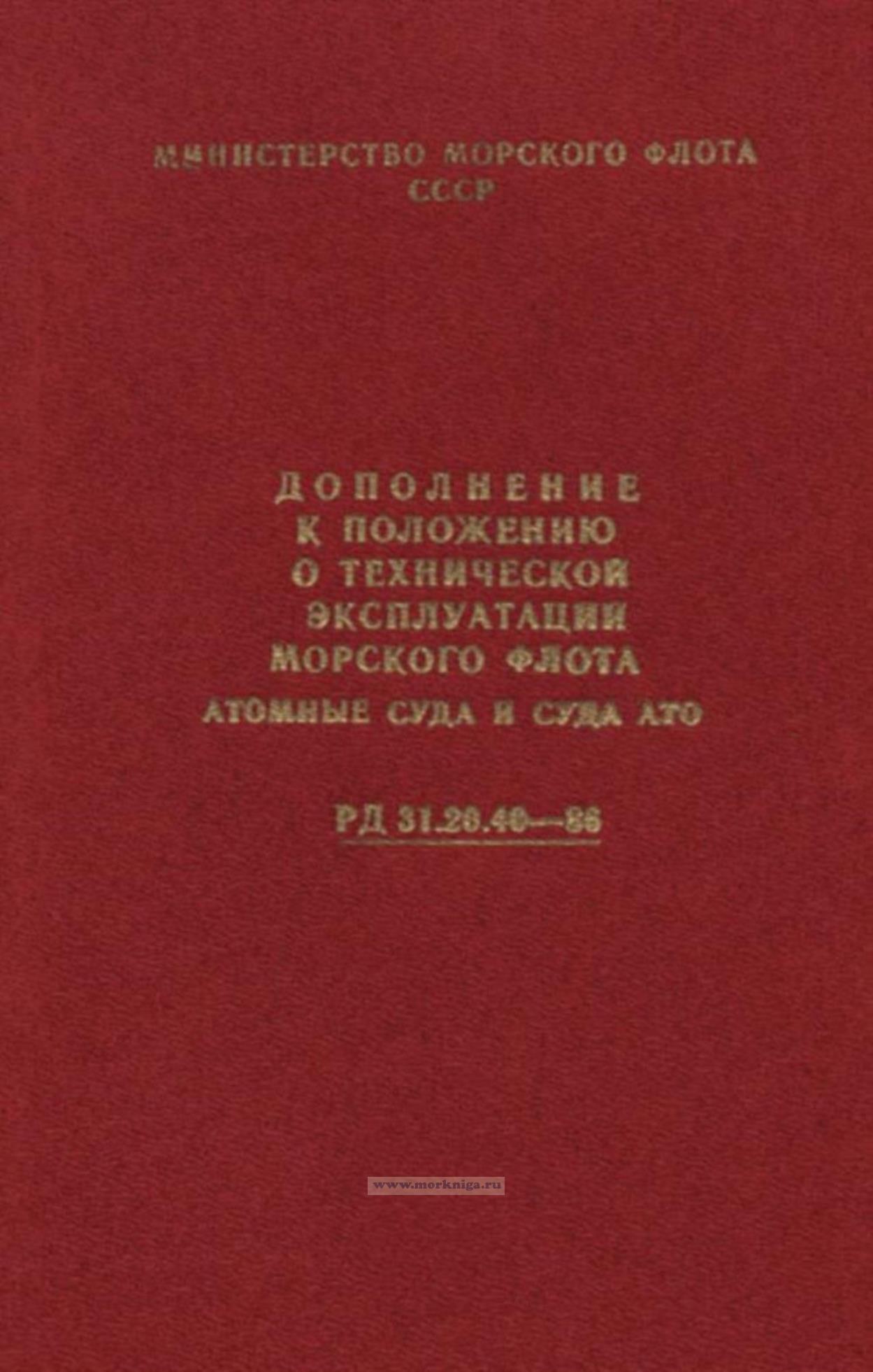 РД 31.20.40-86 "Дополнение к положению о технической эксплуатации морского флота. Атомные суда и суда АТО" утв. 22.01.1987 Министерство морского флота СССР