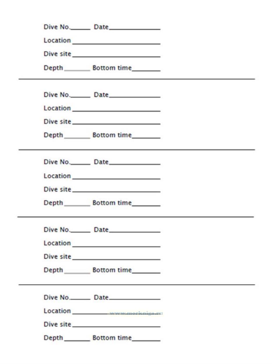 Издание на английском языке Diver`s Logbook используется дайверами для записи информации о каждом погружении.