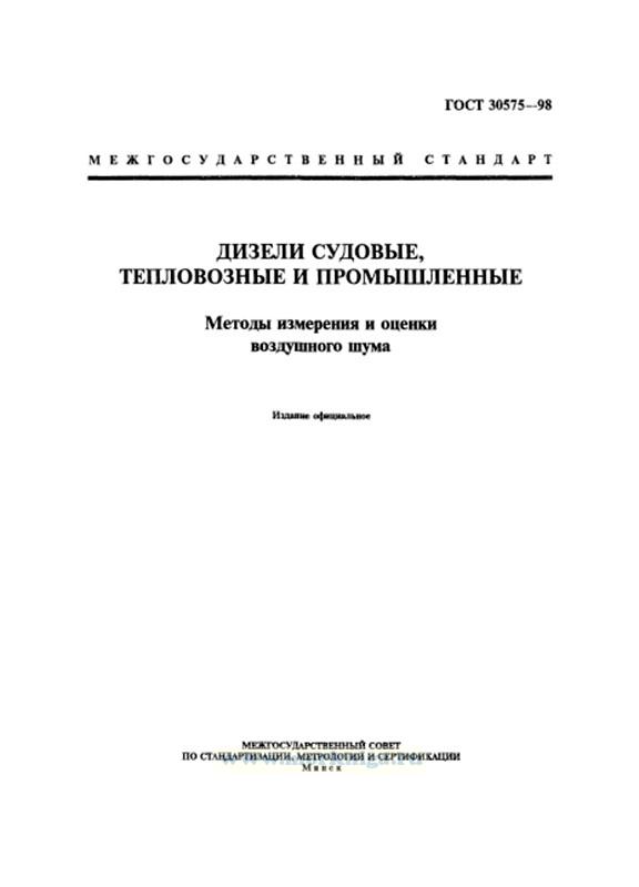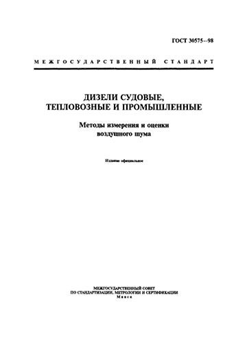 ГОСТ 30575-98 "Дизели судовые, тепловозные и промышленные. Методы измерения и оценки воздушного шума" утв. Госстандарт России от 08 апреля 1999 г. N 118