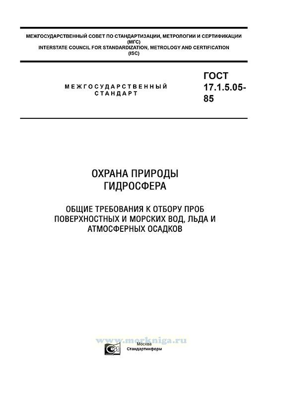 ГОСТ 17.1.5.05-85 "Охрана природы. Гидросфера. Общие требования к отбору проб поверхностных и морских вод, льда и атмосферных осадков" утв. Постановлением Государственного комитета СССР от 25 марта 1985 г. N 774