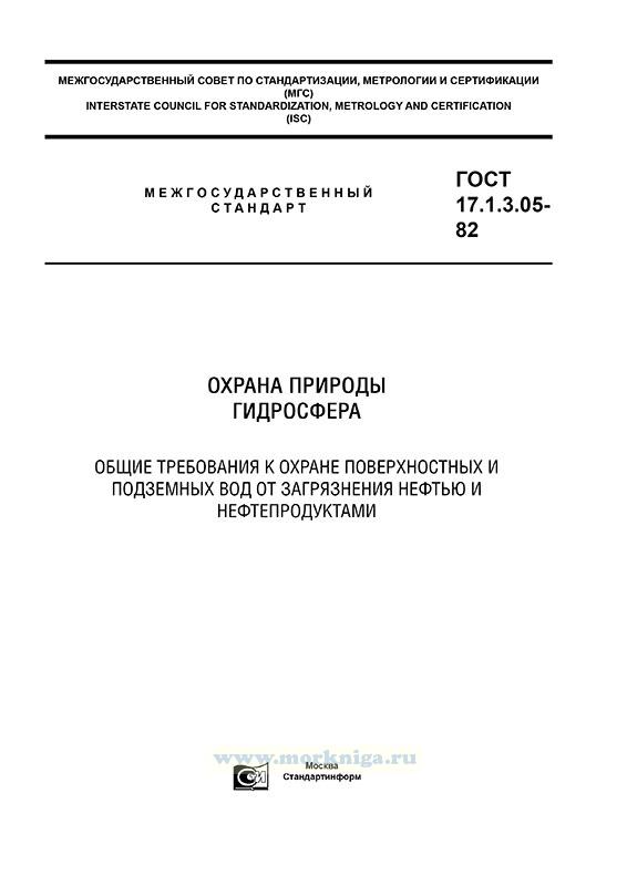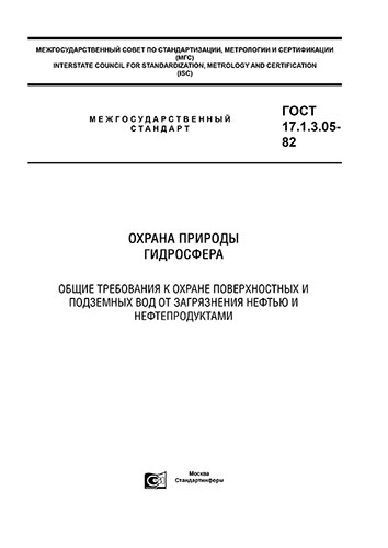 ГОСТ 17.1.3.05-82 "Охрана природы. Гидросфера. Общие требования к охране поверхностных и подземных вод от загрязнения нефтью и нефтепродуктами" утв. Государственного комитета СССР по стандартам от 25 марта 1982 г. N 1243
