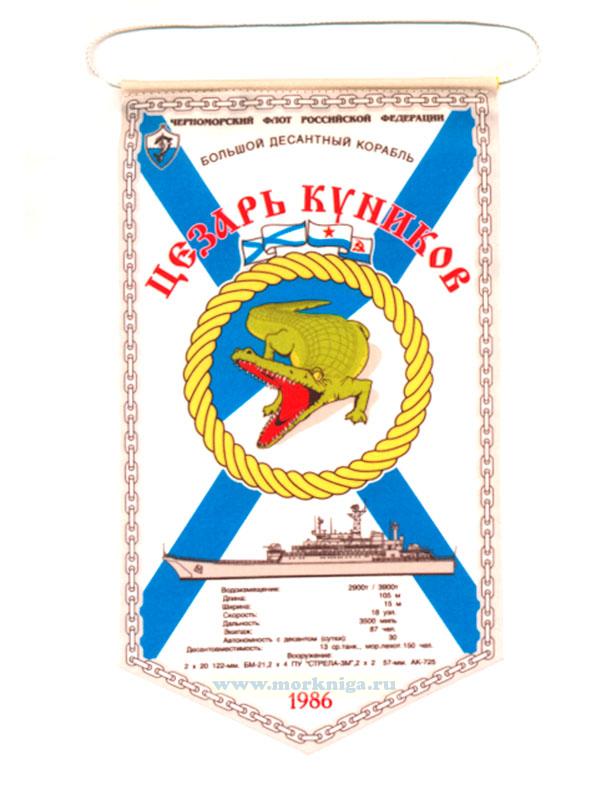 Большой десантный корабль "БДК-64" проекта 775 был построен в Гданьске (Польша). Вступил в строй 30.09.1986 г., вошел в состав Черноморского флота. 10.05.1989 г. корабль был переименован и получил новое имя - "Цезарь Куников".
