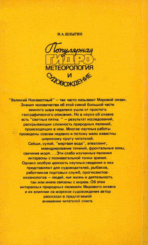 В книге даны современные научные представления, в том числе гипотезы, о природе малоизученных явлений Мирового океана, их влиянии на суда и экипажи, а также советы мореплавателям: схемы расчета или прогноза явления, описания его распространения, возможности учета его действия в практике плавания.
