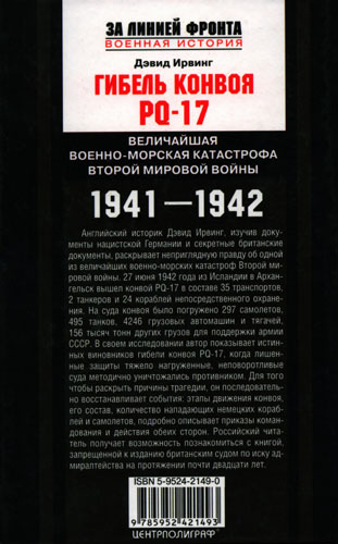 Английский историк Дэвид Ирвинг, изучив документы нацистской Германии и секретные британские документы, раскрывает неприглядную правду об одной из величайших военно-морских катастроф Второй мировой войны. 27 июня 1942 года из Исландии в Архангельск вышел конвой PQ-17 с грузами боевой техники и горючего для поддержки армии СССР.