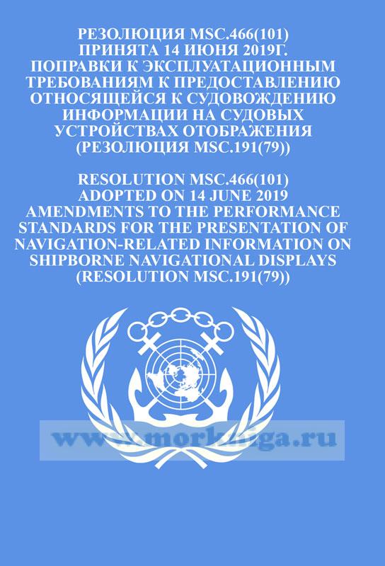 Резолюция MSC.466(101) "Поправки к эксплуатационным требованиям к предоставлению относящейся к судовождению информации на судовых устройствах отображения (Резолюция MSC.191(79))" включена в Сборник № 64 резолюций ИМО/ Collection No.64 of IMO Resolutions.