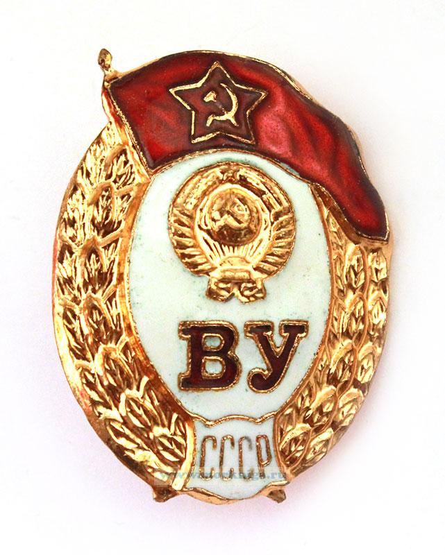 По центру герб СССР, чуть ниже буквы ВУ (Военное училище).