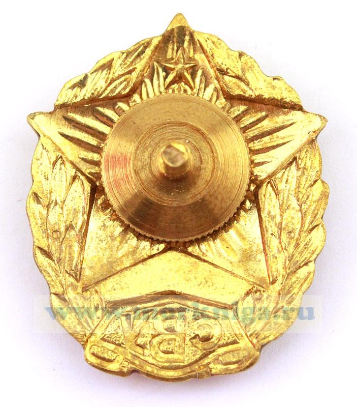 Знак изготовлен из металла золотистого цвета, оформлен в виде лаврового венка, в центр которого помещена пятиконечная рельефная звезда с профилем Суворова. Верхняя часть награды украшена пятиконечной рубиновой звездой, а снизу на красной ленте нанесена надпись «СВУ».