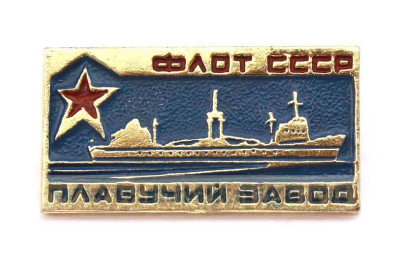 Знак прямоугольной формы. На синем фоне золотом нанесено изображение плавучего завода. С четырех сторон награда окантована золотыми прямоугольными полосами, сверху красным цветом выбита надпись «Флот СССР», снизу черным - «Плавучий завод». Слева рядом с кораблем выбита красная пятиконечная звезда.