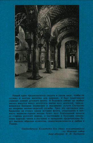 Кронштадтский Морской собор возрожден как храм-памятник славной истории Российского флота. Заново изготовлены и установлены на стенах мраморные памятные доски с именами погибших на службе Родине моряков и священнослужителей.