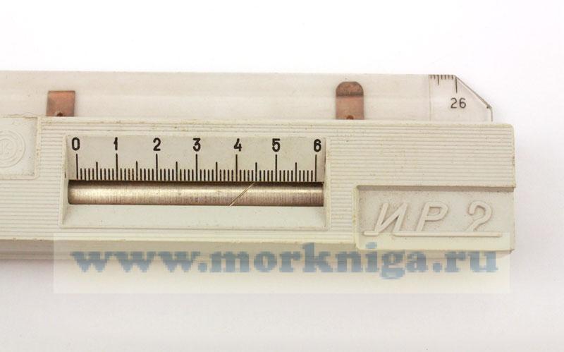 Рейсшина ИР-2 используется для проведения параллельных линий, имеет металлический валик для перемещения по плоскости чертежа. Нанесенный на вращающийся при движении опорный вал линейки желобок (отметочная линия) позволяет измерять пройденное линейкой расстояние.
