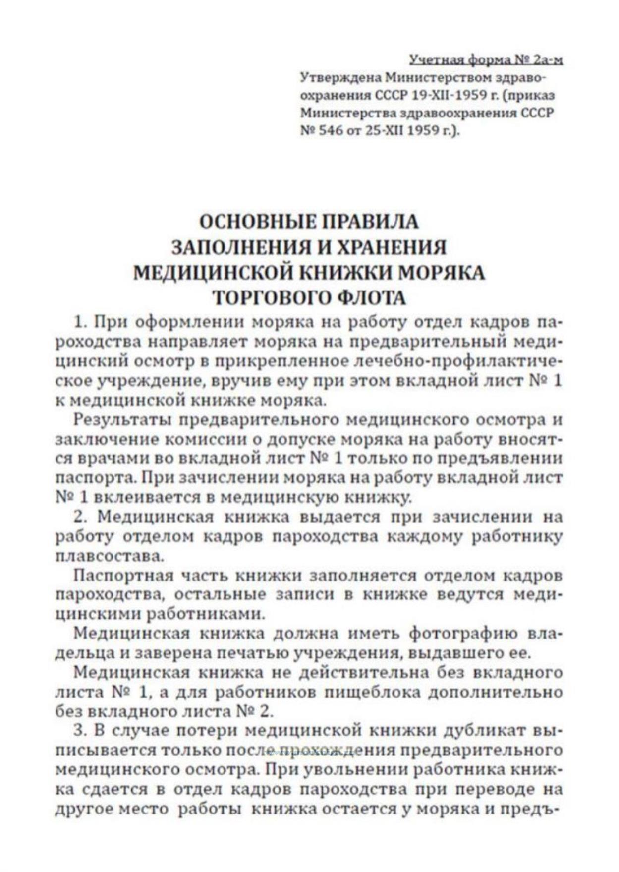 Основные правила заполнения и хранения медицинской книжки моряка торгового флота: