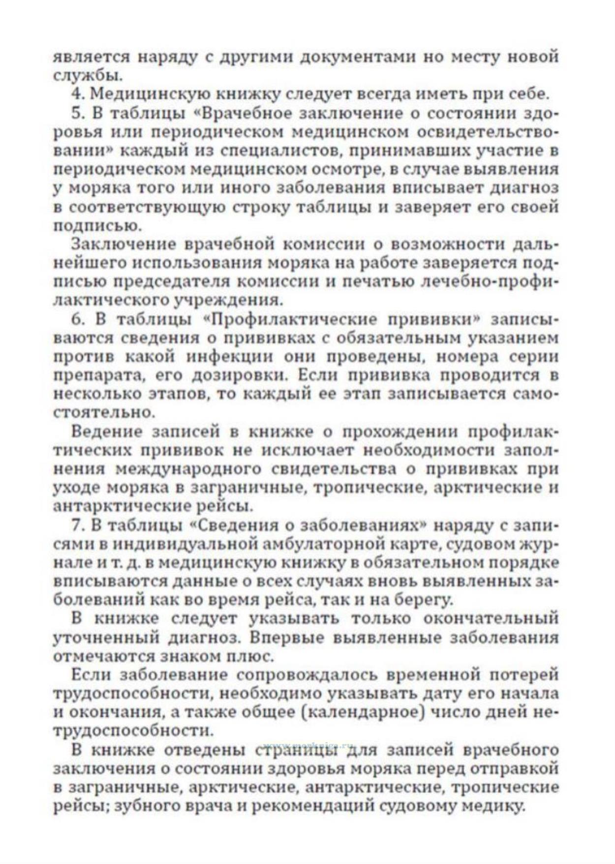 2. Медицинская книжка выдается при зачислении на работу отделом кадров пароходства каждому работнику плавсостава.