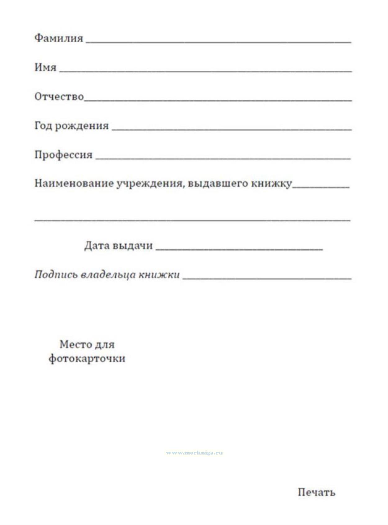 Паспортная часть книжки заполняется отделом кадров пароходства, остальные записи в книжке ведутся медицинскими работниками.