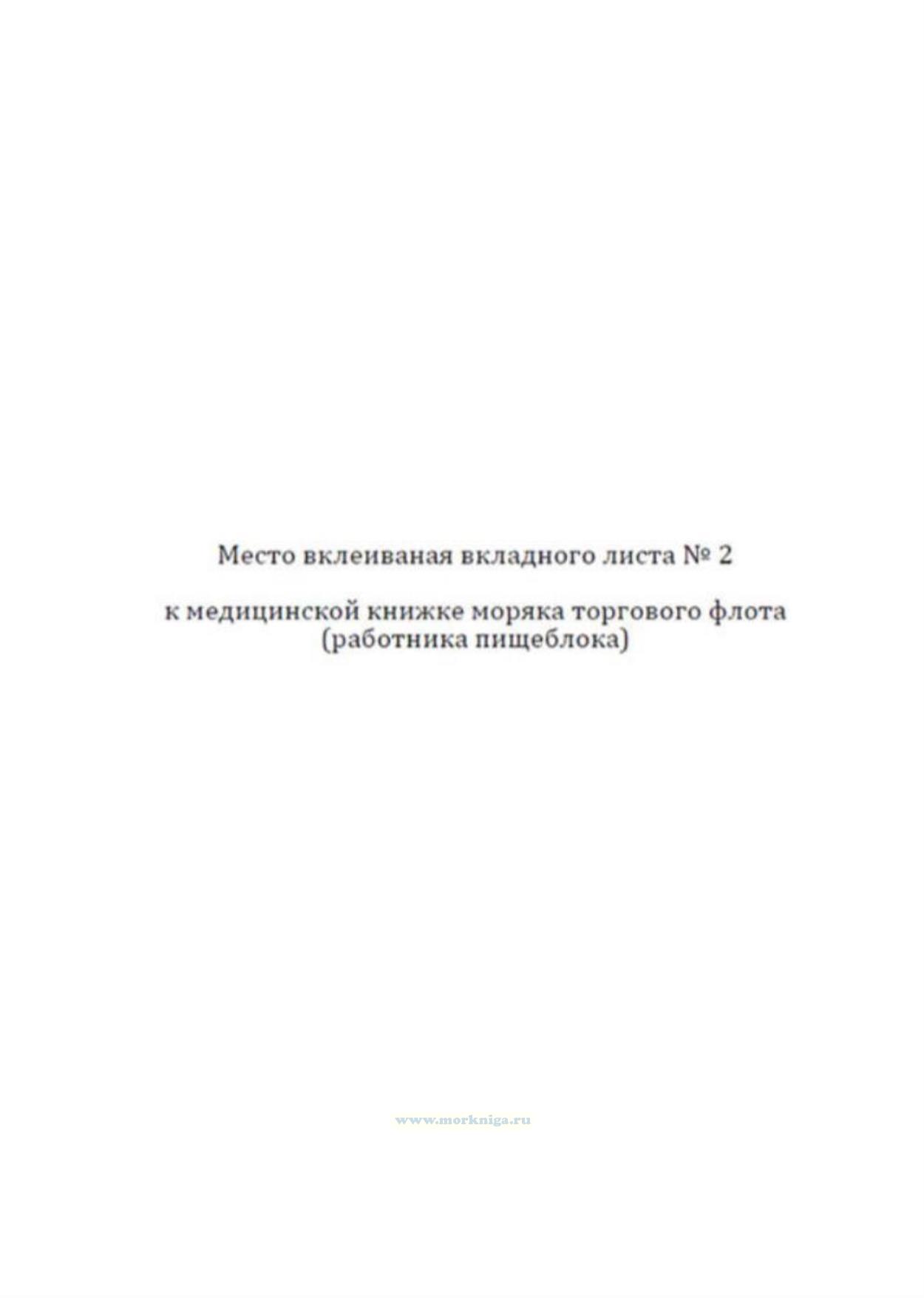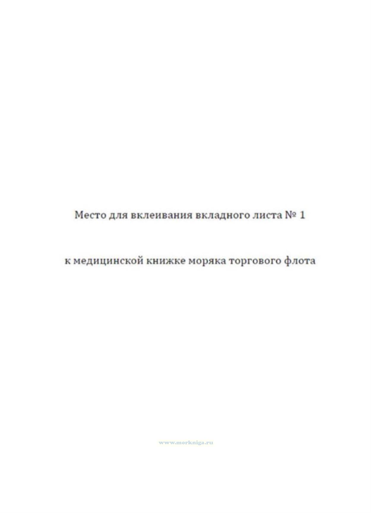 Результаты предварительного медицинского осмотра и заключение комиссии о допуске моряка на работу вносятся врачами во вкладной лист № 1 только по предъявлении паспорта. При зачислении моряка на работу вкладной лист № 1 вклеивается в медицинскую книжку.