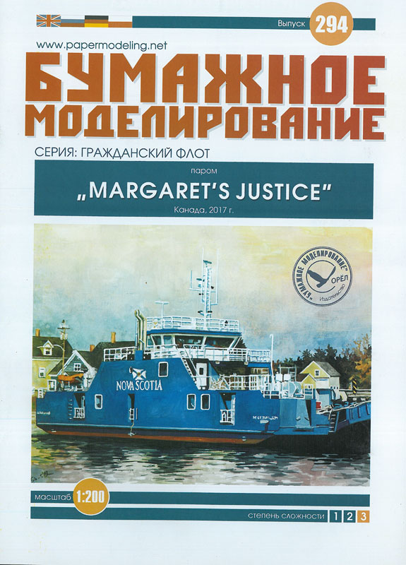 Паром Margaret’s Justice осуществляет сообщение между Фрипортом, Лонг-Айленд и Вестпортом, остров Брайер-Ай-ленд в Новой Шотландии, Канада. Эта трасса - 8-минутный прибрежный маршрут, который может иметь приливы и отливы высотой до 7,5 метров. Судно представляет собой двухсторонний пассажирский и автомобильный самоходный паром. Margaret’s Justice был спроектирован для Министерства транспорта и обновления инфраструктуры Новой Шотландии в 2012 г., построен компанией A.F. Theriault в Метегане. Строительство было завершено в 2016 г., в 2017 г. паром вступил в эксплуатацию.