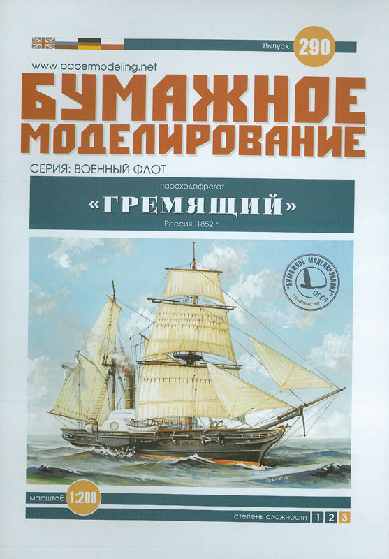 Пароходофрегат "Гремящий" был построен в 1849-1851 гг. на Охтинской верфи по чертежам построенного здесь же в 1843-44 гг. парохода "Грозящий". Официальная закладка состоялась 15 сентября 1849 г., спуск на воду -18 августа 1851 г. Окончательно "Гремящий" ввели в строй летом 1852 г.