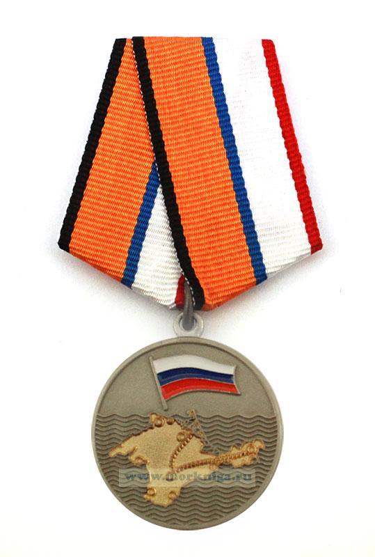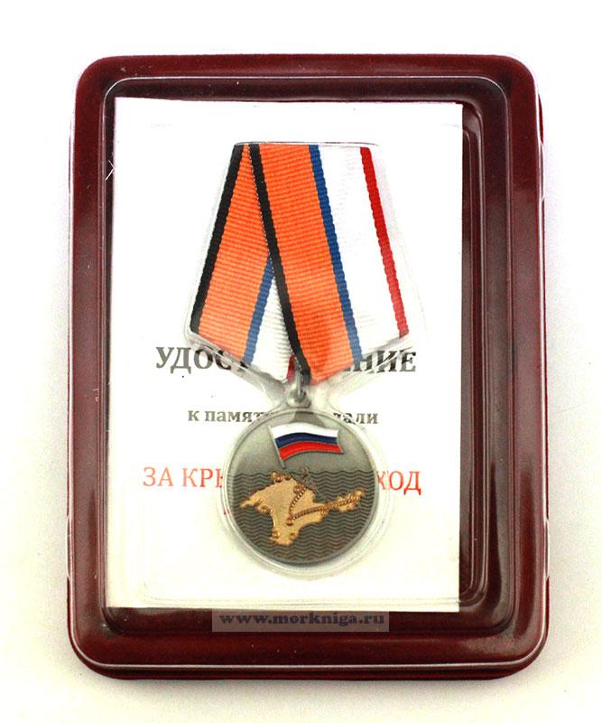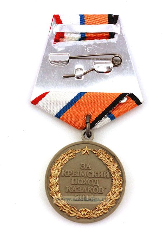 Лицевую сторону памятной награды занимает изображение на фоне моря полуострова Крым, на котором пунктиром нанесен путь. В верхней части помещен флаг РФ. На оборотной стороне выбита надпись в пять строк «За крымский поход казаков 2014» в обрамлении дубового венка, выше которого выбита пятиконечная звезда.