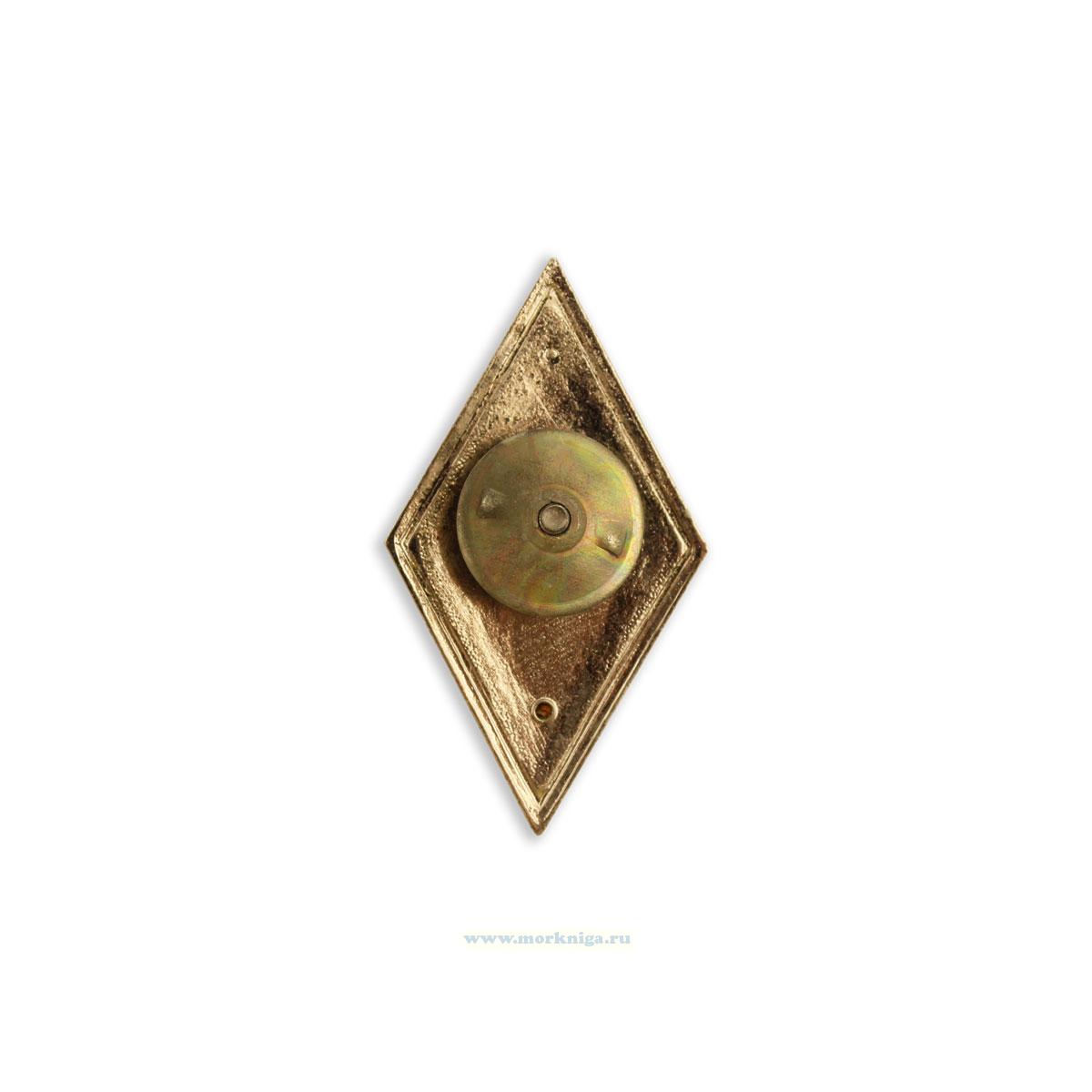 Квалификационный знак за окончание военно-учебного заведения по программам высшего профессионального образования - в виде ромба с выпуклым бортиком. В центре квалификационного знака - накладное изображение главной фигуры Государственного герба Российской Федерации.