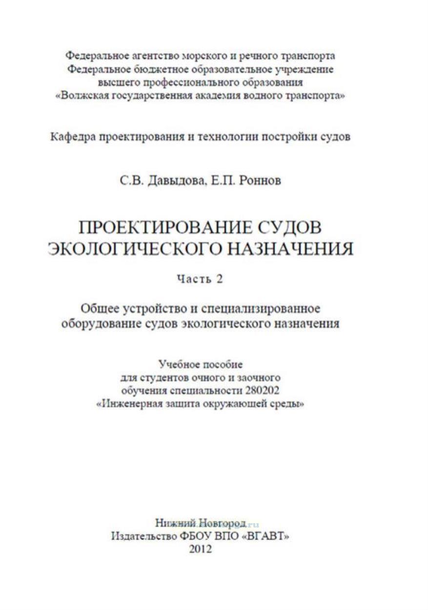 Пособие может быть использовано студентами очного и заочного обучения специальности 280202 «Инженерная защита окружающей среды» при изучении дисциплины «Проектирование судов экологического назначения».