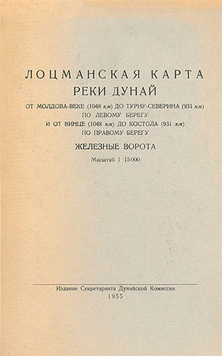 Лоцманская карта реки Дунай участка Железных Ворот от Молдова- Веке (1048 км) до Турну-Северина (931 км) по левому берегу и от Винце (1048 км) до Костола (931 км) по правому берегу издается Секретариатом в соответствии с постановлением Дунайской Комиссии.