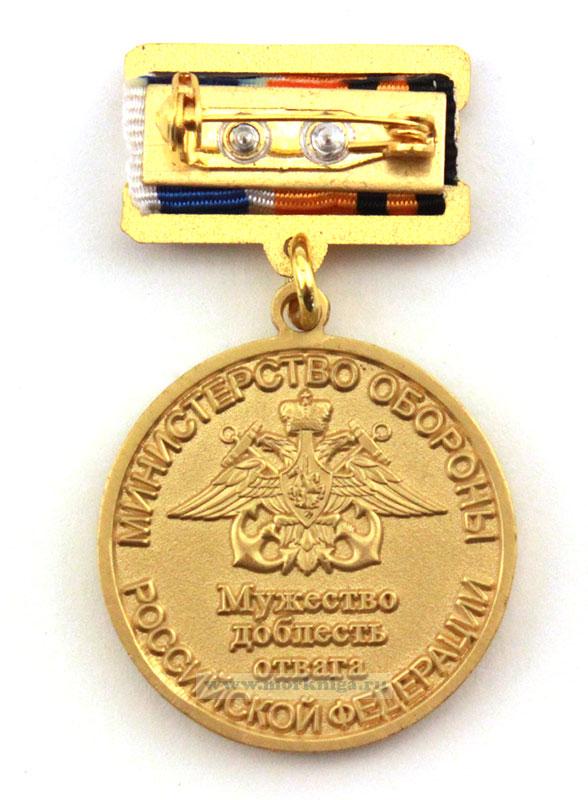 На оборотной стороне в центре эмблема Военно-Морского Флота, под ней надпись в три строки: «Мужество доблесть отвага»; по кругу выбито «Министерство обороны Российской Федерации».