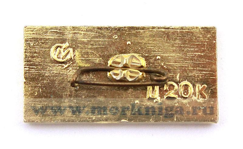 Знак прямоугольной формы. На синем фоне серебром нанесено изображение среднего сейнера. С четырех сторон награда окантована прямоугольными полосами, сверху красным цветом выбита надпись «Флот СССР», снизу черным - «Средний сейнер». Слева рядом с кораблем выбита красная пятиконечная звезда.