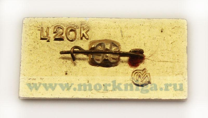 Знак прямоугольной формы. На белом фоне серебром нанесено изображение траулера. С четырех сторон награда окантована прямоугольными полосами, сверху красным цветом выбита надпись «Флот СССР», снизу черным - «Средний траулер». Слева рядом с кораблем выбита красная звезда.