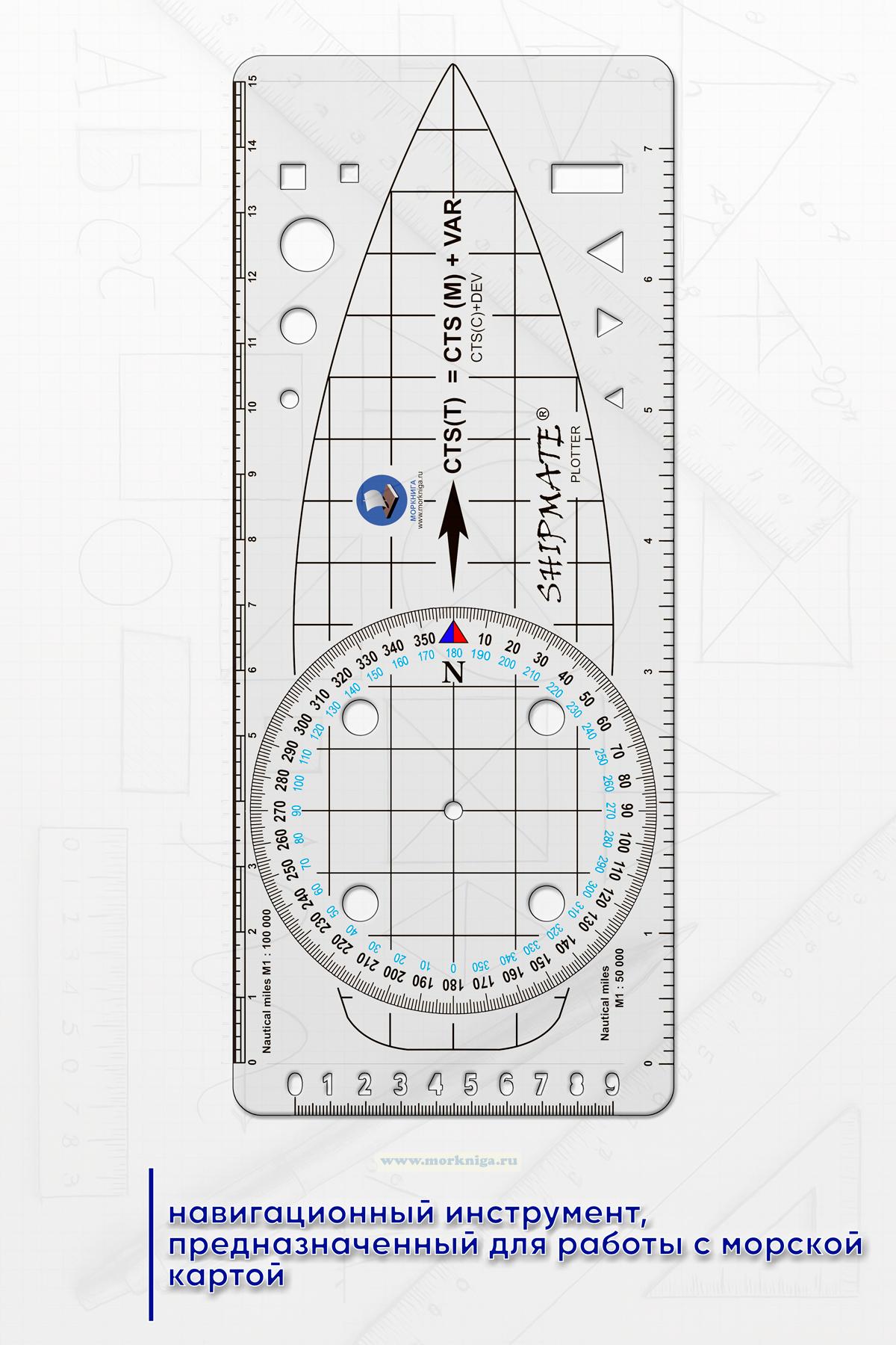 Объединяет в себе линейку и вращающийся на ней транспортир. От известного плоттера Бретона (другое название - Portland Course Plotter) плоттер SHIPMATE отличают: