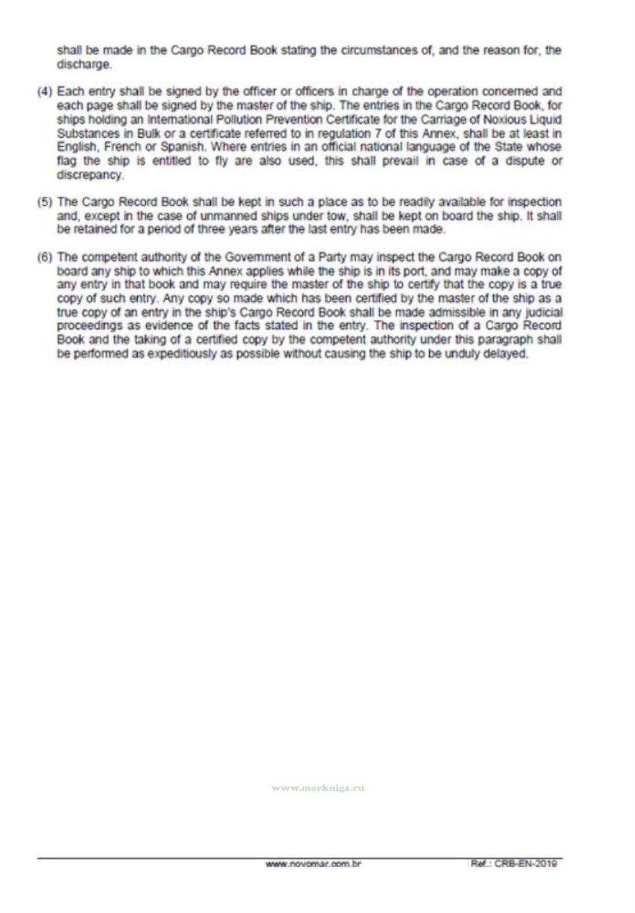 The Cargo Record Book must be available at all times for examination by Nautical Inspectors or Inspectors of any Port State when within the jurisdiction of that State. The Cargo Record Book must be preserved for three years from the date of the last entry.