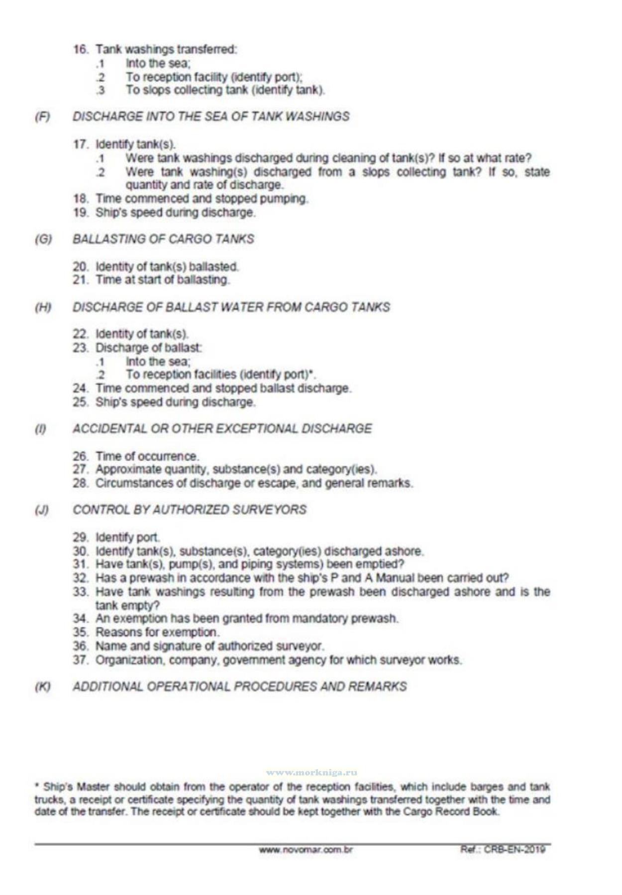 The Cargo Record Book must be properly completed. All Noxious Liquid Substance Cargo and Ballast Operations must be clearly and accurately recorded.