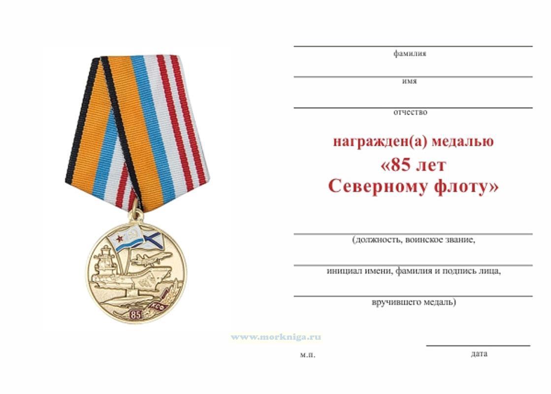 Медаль "85 лет Северному флоту" продается с незаполненным бланком удостоверения