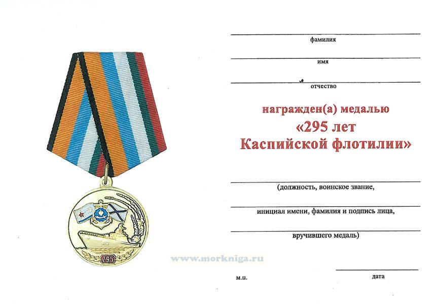 Медаль "295 лет Каспийской флотилии" продается с незаполненным бланком удостоверения