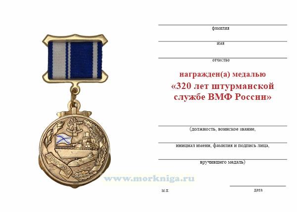 Медаль "320 лет штурманской службе ВМФ России" продается с незаполненным бланком удостоверения