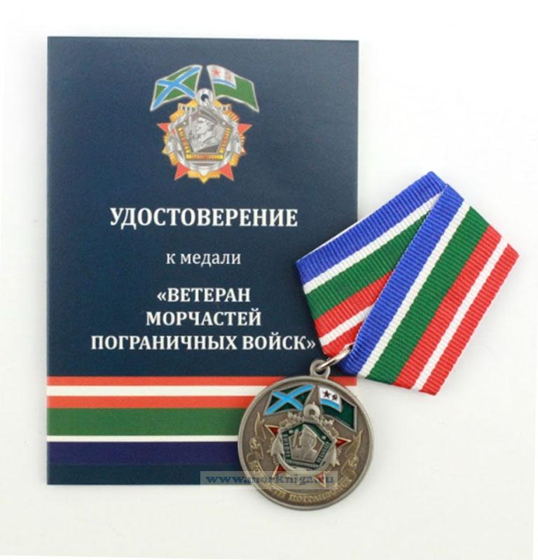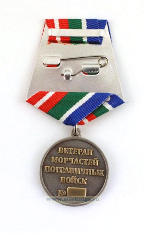 Медаль «Ветеран Морчастей Пограничных войск» изготовлена в форме круга с буртом и шероховатой поверхностью.