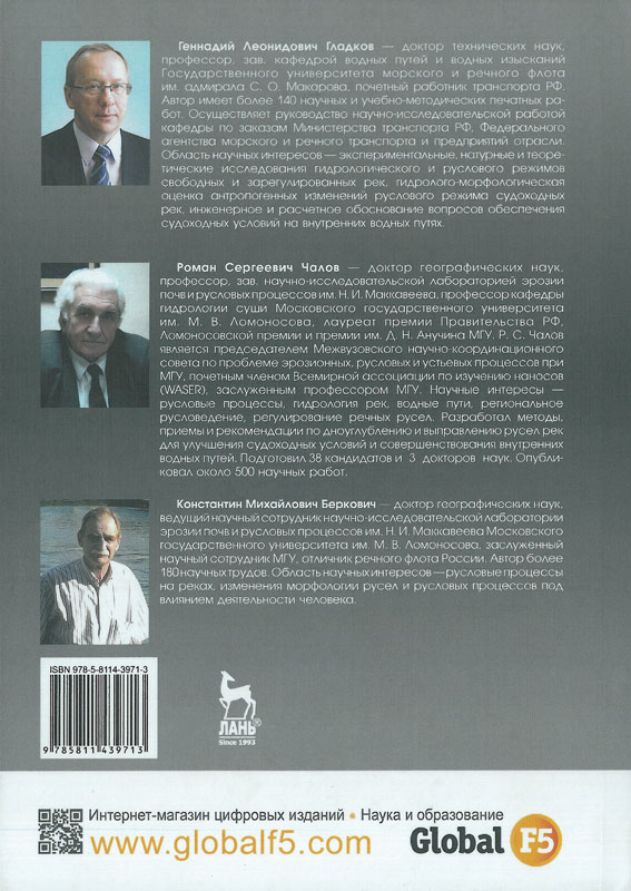 Книга рассчитана на специалистов в области речной гидротехники, русловых процессов, гидрологии рек, водных путей сообщения и гидрографии. Предназначена для научных сотрудников и преподавателей вузов, инженерно-технических работников администраций бассейнов внутренних водных путей, магистрантов, обучающихся по направлениям «Строительство», «Природообустройство и водопользование», аспирантов, обучающихся по направлению «Техника и технологии строительства», занимающихся вопросами проектирования, строительства и эксплуатации внутренних водных путей, а также проблемами гидрологии, геоморфологии, комплексного использования и охраны водных ресурсов.