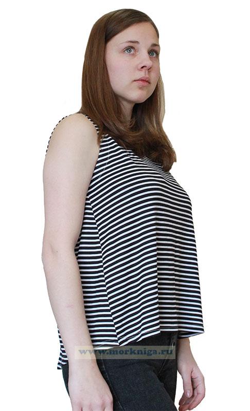 Майка-разлетайка "Бриз" свободного кроя в черно-белую полоску.Состав: 97% вискоза, 3% эластанПлотность: 310 г/м2Цвет: черно-белый