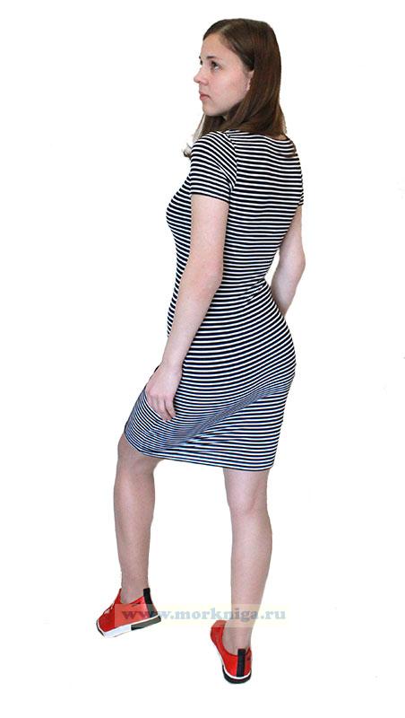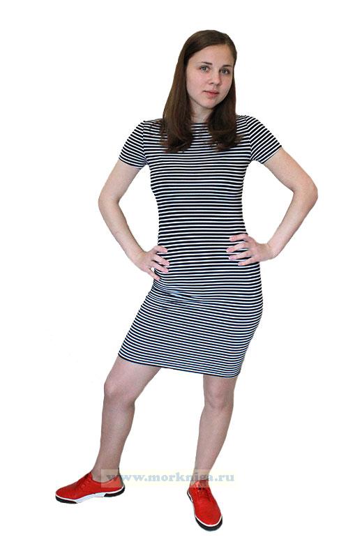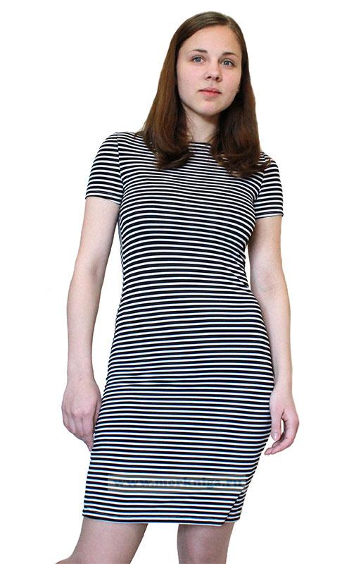 Платье-тельняшка "Мечта капитана" приталенного силуэта с коротким рукавом в черно-белую полоску.