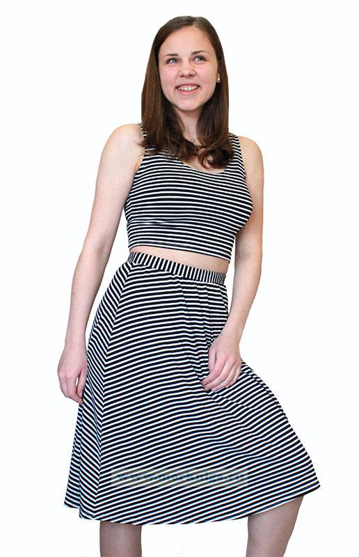 В данный комплект входит топ и юбка в черно-белую полоску.