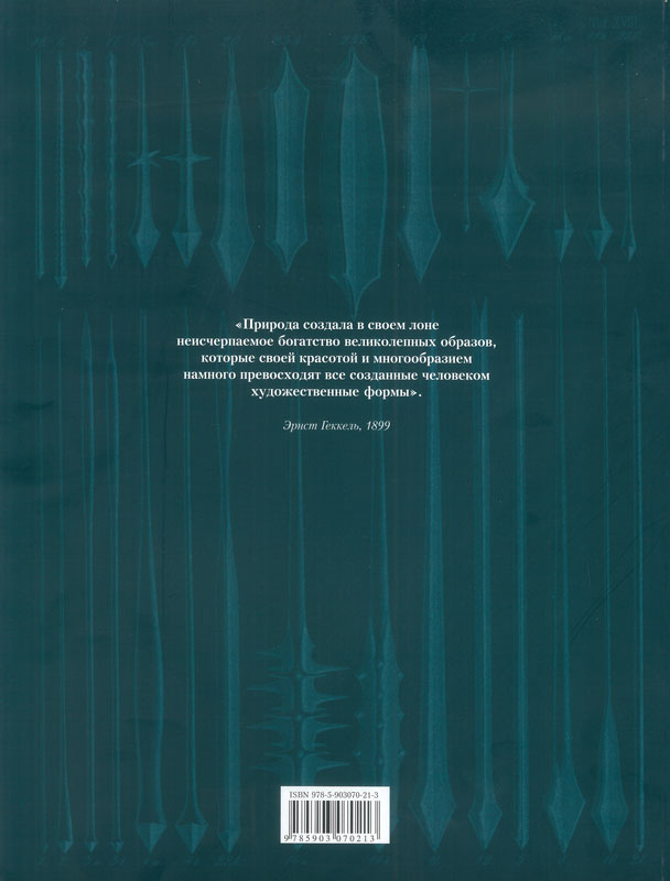 После выхода книги Эрнста Геккеля "Художественные формы природы" (2007 г.) опубликуется в 2009 г. в "Издательстве Вернера Реген" его вторая монография "Красота форм природы". Этот "Атлас радиолярий 1862 года" выходит в России и в мире впервые одновременно в одном издании на двух языках - немецком и русском! Введение к "Атласу радиоляции" писал директор музея "Дома Геккела" в г. Иейна (земля Тюрингии, Германия - www.ehh.uni-jena.de) проф. Олаф Брейдбах.