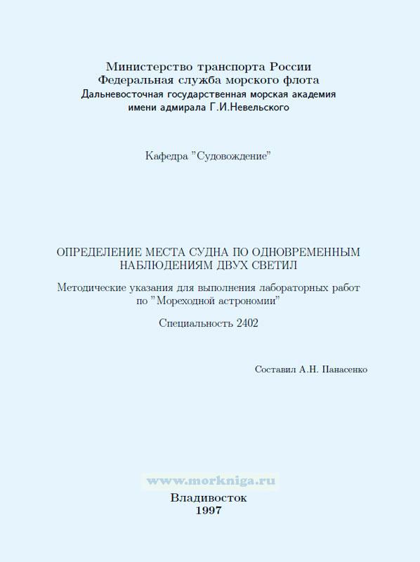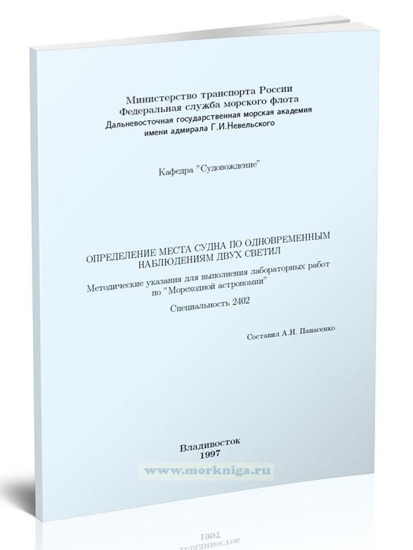 Определение места судна по одновременным наблюдениям двух светил заключается в том, что обе линии положения рассчитываются по одним счислимым координатам. Плавание судна за время наблюдений учитывается приведением высот светил к одному зениту.