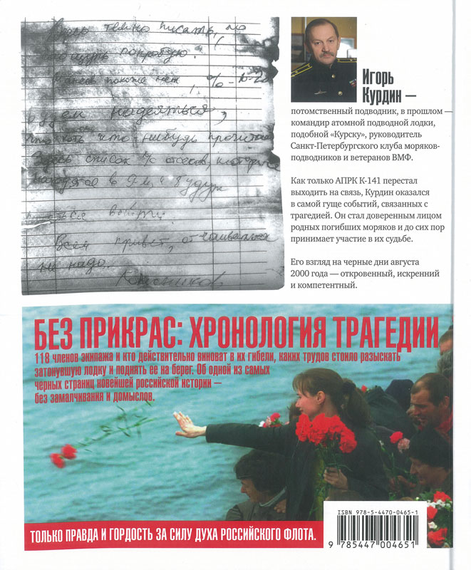 Трагедия подводной лодки «Курск» в Баренцевом море в августе 2000 года всколыхнула нашу страну и весь мир. Потомственный подводник, капитан 1-го ранга, доверенное лицо семей погибшего экипажа Игорь Курдин предлагает профессиональный и очень личный взгляд на историю «Курска». В книге собраны уникальные сведения о конструкторах подводной лодки, об ее истории, разобраны все возможные версии гибели субмарины. Книга будет интересна широкому кругу читателей: популярным языком в ней описаны технические особенности подводных лодок, хронология последнего плавания К-141, подробности операции по подъему тел подводников, приведены важнейшие документы о затонувшем атомоходе и личные истории всех 118 погибших членов экипажа. Богатый и берущий за душу иллюстративный ряд создаст у читателей ощущение сопричастности. Автору удалось найти свои ответы на вопросы о причинах трагедии и о том, как она повлияла на всех нас. Книга-память, книга-событие. Одна из самых драматичных страниц новейшей истории — без домыслов и ложной информации. Только правда и гордость за силу духа российского флота.