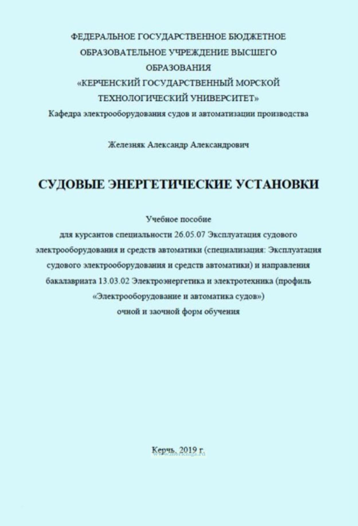 Пособие предназначено для курсантов, осваивающих основные образовательные программы по специальности высшего и среднего профессионального образования 26.05.07 Эксплуатация судового электрооборудования и средств автоматики (специализация: Эксплуатация судового электрооборудования и средств автоматики) и направления бакалавриата 13.03.02 Электроэнергетика и электротехника (профиль «Электрооборудование и автоматика судов»).