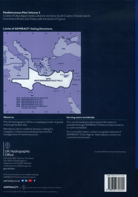 Admiralty Sailing Directions (Pilots) provide essential information to support port entry and coastal navigation for all classes of ships at sea. They amplify charted detail and contain information needed for safe navigation which is not available from charts or other hydrographic publications. They are written with the assumption that the required charts and publications are to hand and are intended to be read in conjunction with them.