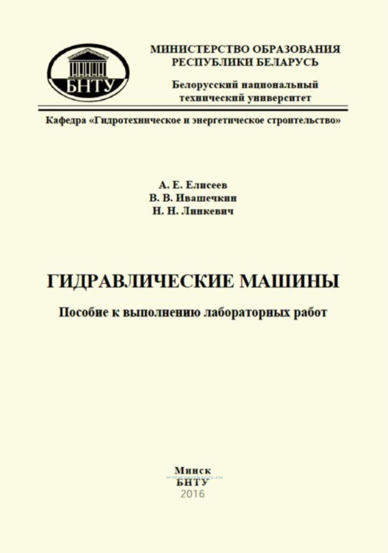 В пособии изложены теоретические сведения, основные требования к выполнению лабораторных работ, методика их проведения, указания по обработке и оформлению экспериментальных данных. Тематика лабораторных работ охватывает изучение конструкций гидротурбин, центробежных и роторных насосов, рассматривается снятие линейных оборотных характеристик турбин, рабочих характеристик центробежного насоса.